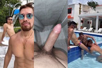 Aaron McLaron fodendo com dois amigos na piscina